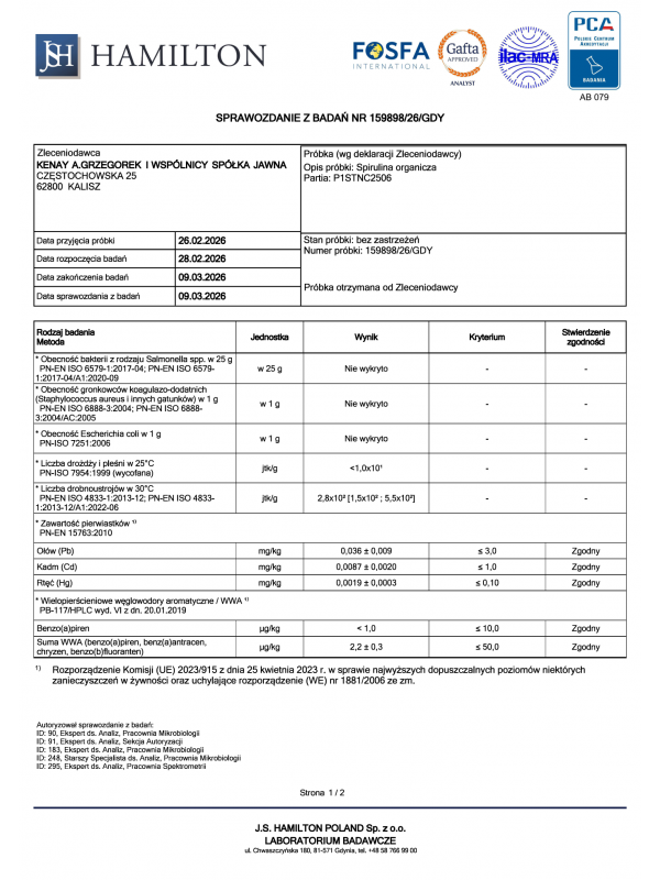 Spirulina organiczna poddawana jest rygorystycznym testom jakości, aby zapewnić, że jest wolna od zanieczyszczeń i spełnia najwyższe standardy ekologiczne.