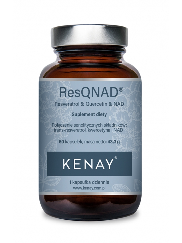 ResQNAD® Resveratrol & Quercetin & NAD+ to produkt PREMIUM z linii suplementów stworzonych z myślą o zdrowym stylu życia i długowieczności. Łączy senolityczne składniki: trans-resweratrol, fitosomową kwercetynę oraz dinukleotyd nikotynoamidoadeninowy (NAD+), tworząc zaawansowaną formułę, która wspiera organizm na wielu poziomach.
