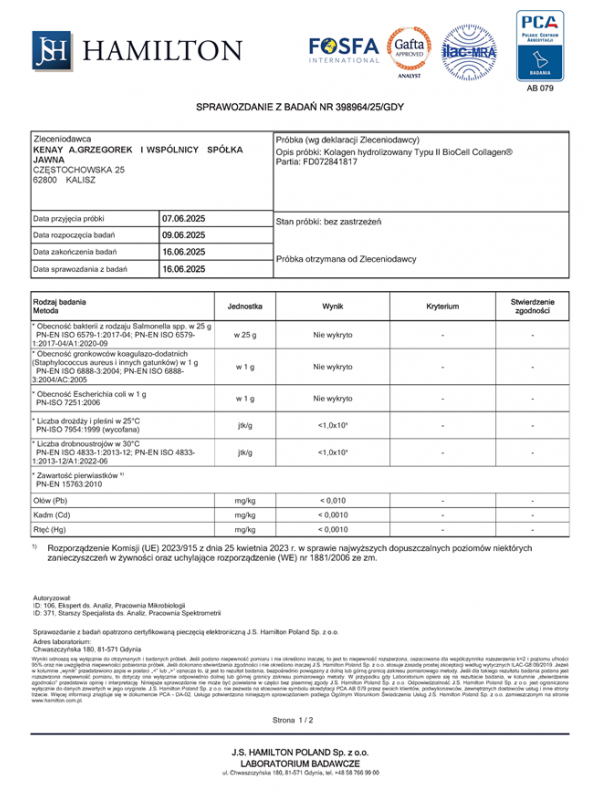 - surowiec BioCell Collagen® jest produkowany wyłącznie w USA i Niemczech